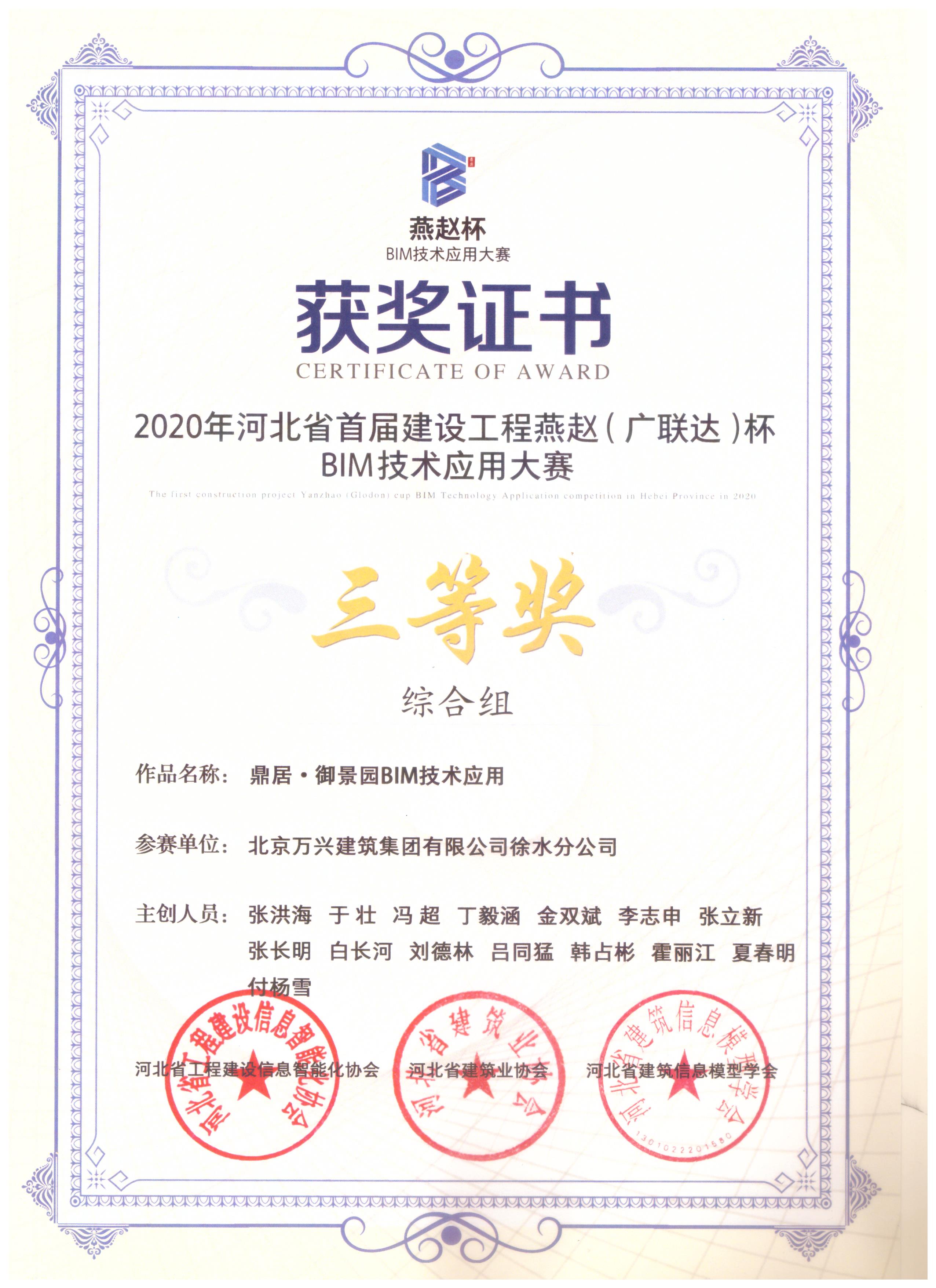 河北省“燕趙杯“BIM大賽綜合組三等獎