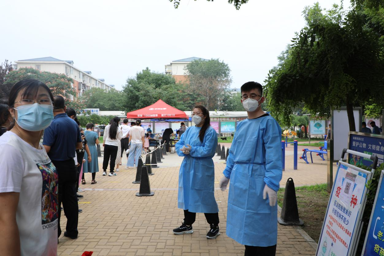 隨后,志愿者來到瑞康家園社區核酸檢測點,變身藍色衛士,全力輔助大白,深入防疫一線。