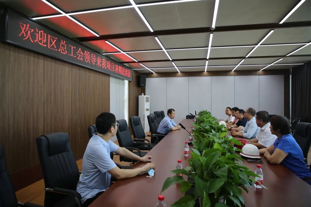 活動現場,區總工會黨組成員、三級調研員、副主席郝澤宏聽取了項目進展情況的匯報,實地考察了施工現場,詳細了解了施工進度、工程質量和安全管理等情況,并對工程的建設進展情況給予了充分肯定。他強調,一線職工要注重防暑降溫,增強勞動保護意識,提高自我防范能力,安全健康地度過高溫季節,以飽滿的精神投身到工程項目建設中去。