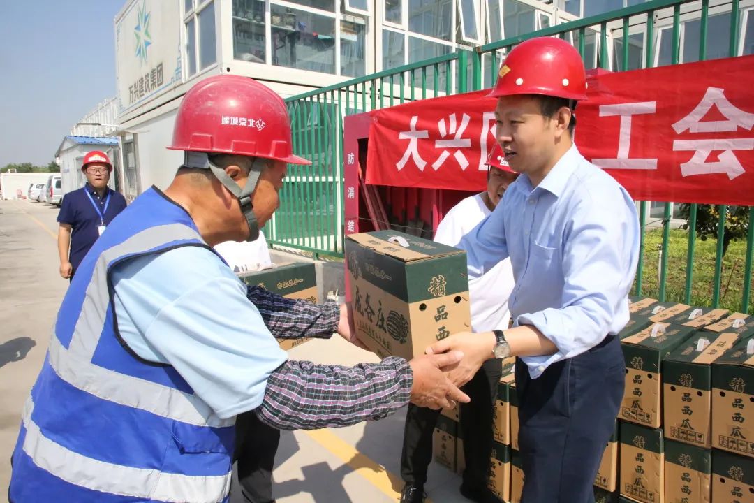 大興區總工會領導到北京萬興承建的大興區檔案館新館項目開展“夏送清涼”慰問活動