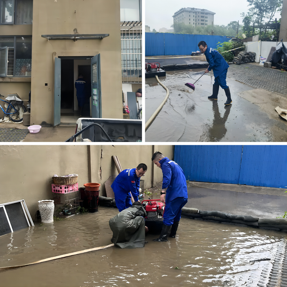 王松帶領應急搶險隊隊員對7號樓地下室,采取“機械+人工”的方式進行抽排水作業,使地下室快速恢復干凈,保障了居民的正常生活。